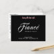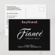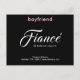 Anuncia tu compromiso con este diseño simple de negro y blanco. Él finalmente le puso un anillo. Ahora ya no es tu novio sino tu prometido. Personaliza con nuestra plantilla fácil de usar. Agrega tus nombres, fecha de la boda y ubicación. En el reverso, toda tu dirección de devolución y un breve mensaje personal.