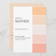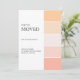 Este diseño moderno se parece a una tarjeta de muestra de pintura, ¡perfecto para propietarios recién mudados! Puedes cambiar las fuentes de texto para adecuarlas a tu estilo. Esta tarjeta tiene invitaciones a fiestas de inauguración de casa para ayudarte a conocer a los vecinos del barrio.