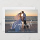Nuestros anuncios de boda elegantes y modernos son la forma perfecta de informar a amigos y familiares sobre su elopamiento, ceremonia secreta o boda privada. "Es oficial" se superpone en letra de pincel de estilo manuscrita blanca sobre su foto horizontal o apaisada favorita con sangrado completo. Personalice con sus nombres y fechas de boda, así como un mensaje personal en el reverso