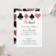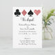 Tu y tu novia se fugaron a Las Vegas para casarse y quieren compartir la noticia feliz con tu familia y amigos. Personalice este brillante y falso purpurina de oro rosa, trajes de cartas, invitación temática e invitación con texto personalizado y una invitación para celebrar con una recepción posterior a la salida.