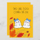 Una forma linda de anunciar que tus gemelos vienen este otoño. Dos fantasmas adorables y hojas de otoño en la parte delantera. Más espacio en la parte trasera para texto personalizado.