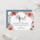 ¿Tuvo que posponer su evento? No hay problema, informe a sus invitados con esta hermosa tarjeta de anuncio de aplazamiento de boda (o cualquier otro evento). Preciosa guirnalda floral de acuarela pintada a mano que rodea los detalles de su aplazamiento con flores y follaje en tonos rosa, rosa polvoriento, melocotón y menta. Detalles de tipografía de escritura a mano moderna y elegante. Posibilidad de utilizarlo para cualquier evento. Espacio para que agregue su propio mensaje. Parte trasera en elegante tono azul polvoriento pizarra. Parte de nuestra colección de bodas y eventos "Ethereal in Dusty Blue".