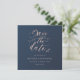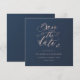 Diseñado para coordinar con nuestra colección de Follaje Rosa y Azul Marino, esta invitación personalizable de anuncio de fecha de boda cuadrada presenta un anuncio de fecha de boda rosa claro en una fuente de escritura con follaje sobre un fondo azul marino. Para una personalización más avanzada de este diseño, por ejemplo, cambiar el diseño, la fuente o el tamaño del texto, haga clic en el botón "PERSONALIZAR" arriba.