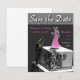 Este anuncio de "Save The Date" presenta a un bombero rescatando a su novia en la parte superior de un pastel decorado hermosamente. Está totalmente personalizado con sus nombres y la fecha de la boda. Si tienes un bombero especial en tu vida, aprovecha esta oportunidad para anunciar tu compromiso a tus seres queridos de una manera muy única. ¡Mira mi tienda para encontrar sobres a juego, etiquetas de dirección, invitaciones de boda y tarjetas de respuesta!