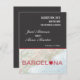 Tarjeta elegante y moderna para guardar la fecha. Perfecta para una boda de destino en Barcelona, España. Cuenta con un mapa de Barcelona con el Mar Mediterráneo. El nombre de la ciudad tiene un corazón dentro de la letra "O". Diseño sofisticado perfecto para una pareja global y trendy. Agregue su propia redacción o pida como se muestra.