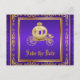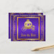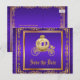 Tarjetas postales de anuncio de fecha con hermosa carroza dorada en un rico fondo de remolino púrpura y dorado. Puede agregar los detalles de su evento en el estilo de fuente y color de su elección.