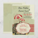 Un anuncio encantador de "Save the Date" para una boda en destino. Con un toque de estilo vintage, este diseño presenta sombrillas de playa, una maleta, un patrón de franjas audaces y una etiqueta decorativa para su personalización.