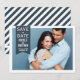 Anuncio clásico de fecha de salvación con patrón de rayas diagonales blancas y azules y etiqueta de la Marina. Esta tarjeta plana de fecha de salvación moderna es completamente personalizable.