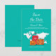 ¿Tienes una boda en un destino? ¿Qué mejor manera de anunciar la fecha y el lugar que con este anuncio de Time To Travel? La tarjeta presenta un mapa del mundo y maletas contra un fondo azul turquesa. (<a href='http://www.freepik.com/free-vector/great-background-with-baggage-and-world-map_1040495.htm'>Diseñado por Freepik</a>). <br/><br/>La tarjeta es fácil de personalizar con tus palabras, fuente, color de fuente y elección de seis tipos de papel.<br/><br/>¿No es exactamente lo que estás buscando? Todos nuestros productos se pueden diseñar a medida para satisfacer tus necesidades sin cargo adicional.<br/><br/>Simplemente contáctanos en askcottonlamb@gmail.com<br/><br/>Productos coordinados disponibles: