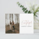 Comparte tus alegres noticias con estilo con esta moderna tarjeta de anuncio de foto "Estamos comprometidos". El elegante diseño de foto completa destaca su imagen favorita de la feliz pareja, mientras que la tipografía elegante manuscrita añade un toque romántico. Diseñada con simplicidad y estilo contemporáneo, esta tarjeta hace que su anuncio de compromiso sea personal y atemporal, perfecto para que amigos y familiares se enteren de su próxima celebración. Se proporciona un amplio espacio para los detalles clave de la fiesta o un mensaje especial, lo que hace que esta tarjeta minimalista sea una forma hermosa y memorable de marcar el comienzo de su viaje de boda.