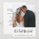 Estos anuncios de post-boda y tarjetas de invitación a la fiesta, sencillos y elegantes, presentan su foto personal en la portada, con una tipografía manuscrita negra y de moda que dice "hemos atado el nudo". Hay espacio para agregar sus nombres y la fecha. Una apariencia fresca y moderna que es la forma perfecta de hacer saber a amigos y familiares que están casados e invitarlos a la fiesta de celebración de su boda.