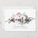 Este diseño presenta un arreglo floral de acuarela rosa suave detrás de las palabras "save the date" en negrita y letra manuscrita. Los nombres de la pareja y los detalles de la boda se muestran a continuación y se pueden personalizar. Gráficos ©Create The Cut