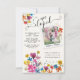Invitaciones de anuncio "Nos Fugamos" con una foto en la parte frontal. ¡Genial para un jardín, al aire libre o un ambiente boho! Cuenta con flores secas o prensadas en colores pastel brillantes con un fondo falso muy ligero ligeramente moteado. Si tu foto no encaja correctamente, siempre puedes recortarla ANTES de subirla a Zazzle. Por favor, contacta conmigo en tkatz@me.com si tienes algún problema.