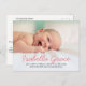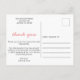 Tarjeta postal de anuncio de nacimiento de bebé niña con nombre en guión elegante rosa con mensaje de agradecimiento personalizado en la parte posterior por el apoyo y los regalos.