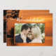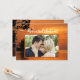 Anunciar un matrimonio privado con estas invitaciones de puesta de sol fotográfica. Color naranja claro con una puesta de sol sobre la imagen de fondo del agua. Añadir una foto horizontal (horizontal) de la pareja. El texto de arriba es: "Hemos atado el nudo". En la parte posterior, agregue ambos nombres en un guión moderno y utilice el texto impreso para incluir información del boda, como la fecha y la ubicación. Perfecto para una pequeña ceremonia privada o para un fusilamiento.