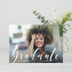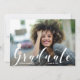 Superposición de texto simple de graduado en su foto favorita en la parte frontal y la misma o una foto diferente en la parte posterior con los detalles del anuncio de graduación en la parte posterior. MÁS diseños en nuestra tienda para invitaciones y estilo de tarjeta postal.