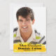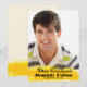 Un banner de grunge de color amarillo soleado en la parte inferior de tu foto contiene tu anuncio de graduación. No te olvides de cambiar el año para que refleje el tuyo.