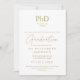 Este anuncio de graduación de título de doctorado elegante dorado se puede personalizar con los detalles de su graduación y una foto en el reverso. Diseñado por Thisisnotme©
