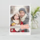 Anuncio de foto para guardar la fecha en coral y gris. La parte trasera tiene un patrón diagonal en blanco y coral.