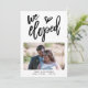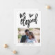 Una forma elegante de hacer saber a tus amigos sobre tu fuga y invitarlos a unirse a ti para una celebración post-boda también. Conjunto elegante de escritura 'Nos fugamos' en la parte delantera en negro, debajo del cual agregarás tu foto favorita de tu boda, y personalizarás tus nombres, y fecha y lugar de tu ceremonia. En la parte posterior, personaliza fácilmente con los detalles de tu anuncio e invitación.