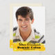 Una pancarta grunge de color amarillo soleado en la parte inferior de tu foto contiene tu anuncio de graduación. No te olvides de cambiar el año para que refleje el tuyo.