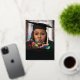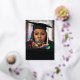 Este moderno anuncio de graduación con confeti utiliza 5 fotos y es elegante y perfecto para un graduado con colores escolares negro y plateado. ¡Celebra al nuevo graduado con este divertido anuncio de graduación!