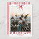 Anuncio de graduación con foto de Coquette con lazo rojo y blanco con un reverso de encaje a rayas rojas y blancas.