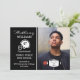 Muestra el espíritu de equipo para tu jugador de fútbol americano graduado favorito con este diseño en blanco y negro de casco de fútbol americano, número de jugador y foto de Holiday Hearts Designs (derechos reservados). La foto del marcador de posición del template se atribuye a Steven Jones a través de Unsplash.