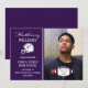 Muestra tu espíritu de equipo por tu jugador de fútbol americano favorito con este diseño de número de jugador y foto de casco de fútbol americano de color púrpura oscuro y blanco de Holiday Hearts Designs (derechos reservados). La foto del marcador de posición del template tiene crédito a Steven Jones a través de Unsplash.