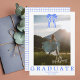 Anuncio de graduación con foto de lazo azul coquette