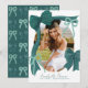 Este anuncio de graduación de coqueta presenta su foto rodeada de lazos verdes dibujados a mano. El reverso presenta un fondo verde oscuro con un patrón de lazos. Personalícelo según sus necesidades. Puede encontrar productos coincidentes en mi tienda.
