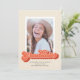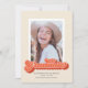 Este divertido anuncio de graduación con una sola foto presenta la palabra graduado escrita en un estilo de letra retro en tonos de coral. La parte trasera de la tarjeta tiene un patrón de franjas diagonales que coordinan con el color.