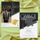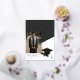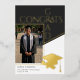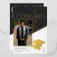 Celebre su logro con este diseño de anuncio de graduación con foto con relieve de oro geométrico negro, blanco y dorado moderno. La parte delantera presenta un diseño de foto audaz, mientras que la parte trasera incluye una silueta elegante de gorra y diploma. Perfecto para estudiantes de secundaria o universitarios que buscan un look minimalista y profesional. Use una foto en color o en blanco y negro. Creado por Simply Farmhouse Press.