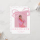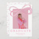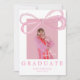 Anuncio de graduación con foto de cinta y lazos rosados Coquette con lazos rosados en la parte posterior.
