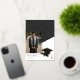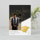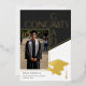 Celebre su logro con este diseño de anuncio de graduación con lámina de foto de graduación geométrica dorada, negra y blanca. La parte frontal presenta un diseño de foto audaz, mientras que la parte posterior incluye una silueta de gorra y diploma elegante. Perfecto para estudiantes de secundaria o universitarios que buscan un look minimalista y profesional. Use una foto en color o en blanco y negro. Creado por Simply Farmhouse Press.