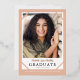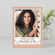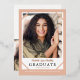 Anuncio de graduación con lámina dorada rosa de moda es perfecto para el graduado de secundaria o universidad que busca una tarjeta elegante pero moderna y sencilla. Incluye espacio para 2 fotos, una en la parte frontal y otra en la parte trasera. Personalice el texto para que diga lo que desee. Ejemplo mostrado con lámina dorada rosa. ¡Elija plata u oro para mezclar sus metales!