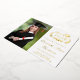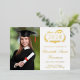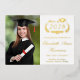Anuncio moderno de graduación universitaria que incluye lámina real, "Promoción de" en una ilustración de corona de laurel que incorpora un adorno de gorra de graduado y diploma, una foto del graduado y su nombre en una elegante letra cursiva. Agregue su escuela, especialidad, honores o planes futuros.