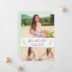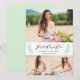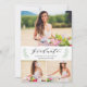 Este diseño de anuncio de foto de collage de graduación presenta laureles florales verdes y un fondo verde pálido.