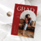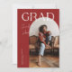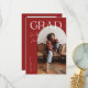 Tarjeta de anuncio de graduación elegante y moderna para enviar a familiares y amigos. Hay un marco de arco rojo alrededor de tu foto. Dice "GRAD" en la parte superior con tu nombre escrito debajo en una fuente de escritura informal.