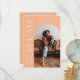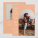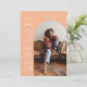 Tarjeta de anuncio de graduación elegante y moderna para enviar a familiares y amigos. Hay un marco de arco de durazno alrededor de tu foto. Puedes agregar una segunda imagen en el reverso y el mensaje es editable. Dice "graduado" en el lado de la tarjeta en tipografía celestial y boho.