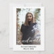 Crea el anuncio de graduación o invitación de graduación perfecto con este bonito escudo en negro y blanco. ¡Este diseño sofisticado y elegante es fácil de personalizar para que sea único! Este anuncio de graduación con foto presenta una de las fotos favoritas de tu graduado en la parte trasera de este anuncio. Envíame un mensaje si necesitas algún artículo que combine.