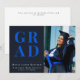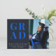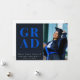Celebre a su graduado con estilo con esta tarjeta de anuncio de graduación de foto moderna con tipografía azul negrita y un diseño negro elegante. Perfecto para anuncios de graduación de escuela secundaria o universidad con una foto personalizada y año de clase.