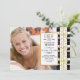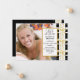 Un anuncio de graduación elegante para un graduado con antecedentes musicales o para un amante de la música. Las teclas del piano están dispuestas como borde del lado derecho con notas musicales doradas. Su personalización también está enmarcada en dorado.