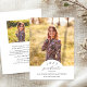 Este elegante y sofisticado anuncio de graduación con foto presenta una superposición de foto en forma de arco en blanco, junto con plantillas de texto para una personalización sencilla. La parte posterior contiene una plantilla de 2ª foto y plantillas de texto para una mayor personalización, ¡como para compartir los planes futuros del graduado!