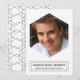 Un hexágono simple crea un escaparate muy moderno y minimalista para la foto de tu graduado. Un patrón de hexágono completa la parte posterior de este anuncio de graduación contemporáneo.