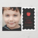 Celebre la graduación de preescolar de su hijo con este moderno y encantador anuncio de graduación. La parte frontal de la tarjeta presenta una dulce ilustración de una manzana en tono medio con una superposición de texto "Clase de (Año)". Debajo de la ilustración está el mensaje "la niña de nuestros ojos", así como espacio para el nombre de su hijo y su escuela. El texto y el diseño están colocados sobre un fondo negro sólido, con un borde de marco ondulado blanco juguetón. Este anuncio también incluye espacio para una gran foto del cliente. La parte trasera de la tarjeta presenta un patrón de manzana de medio tono coordinado.