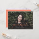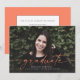 Este anuncio de graduación de foto de sangrado completo presenta la palabra "graduado" escrita en guion de coral en la parte delantera. Tiene espacio para el nombre del graduado, año de clase y escuela. La parte posterior de la tarjeta se puede utilizar para un mensaje personal o detalles de la invitación a la fiesta de graduación.