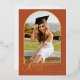 Honre el logro de su graduado con este elegante anuncio de graduación con tema de terracota y dorado. Con una llamativa escritura en caligrafía dorada "Graduado", y espacio para una gran foto en un marco arqueado moderno, este diseño emana sofisticación y encanto. Perfecto para graduaciones de secundaria o universidad, combina el estilo moderno con una elegancia atemporal. Personalice con sus detalles para crear un recuerdo memorable.