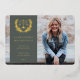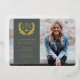 Un anuncio de foto de graduación formal pero moderno para celebrar a aquellos que obtienen un título de Juris Doctor. La parte delantera del anuncio presenta una foto a sangre con una superposición de color. El símbolo de la balanza de la ley (con la abreviatura 'JD'), la corona de laurel y el texto del modelo se pueden imprimir en un color de foil de su elección. La parte trasera presenta un fondo de color sólido y texto de plantilla para un mensaje más largo. Si prefiere no incluir texto en la parte trasera, simplemente elimínelo antes de realizar el pedido. Si prefiere una foto en la parte trasera de la tarjeta, elimine tanto el fondo de color como el texto de la plantilla y cargue su propia foto. El diseño está disponible en diferentes colores en mi tienda, en versiones sin la abreviatura 'JD' para que puedan adaptarse a cualquier calificación legal y también en versiones sin relieve de foil. Otros diseños sin una superposición de color entre la foto y el texto también están disponibles (en foil y no