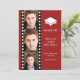 Este moderno anuncio de graduación es perfecto para anunciar la graduación de tu adolescente de una manera divertida. Las fotos en la parte delantera están dispuestas en estilo de tira de película de cine, protagonizada por el graduado en su película titulada "Graduación" con un rico fondo rojo. Si necesita algún cambio en el diseño, como el color, el texto o la fuente, por favor contáctenos en seamistmail@gmail.com. Nos encanta ser parte de tus felices recuerdos.